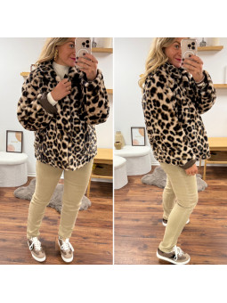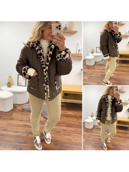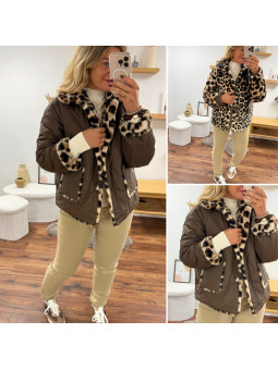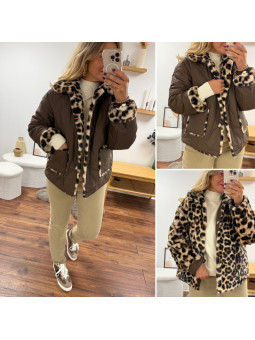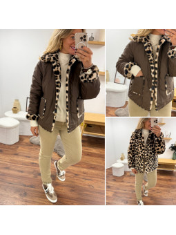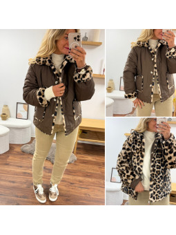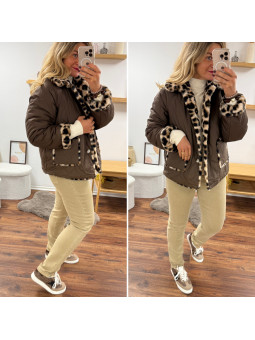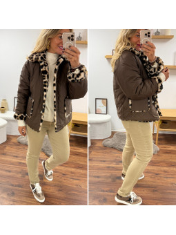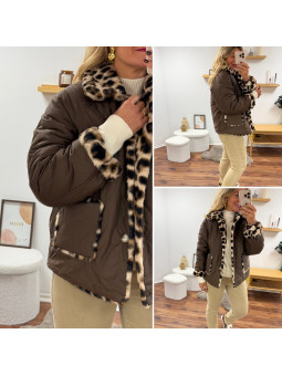 Veste réversible matelassée chocolat et fourrure léopard Le SM...