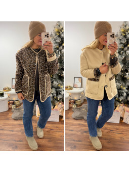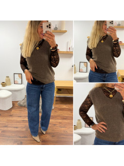 Tee shirt manches longues noir avec bande léopard sur la...