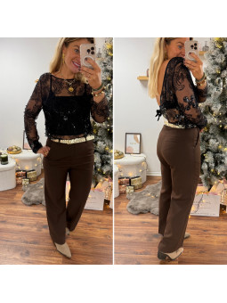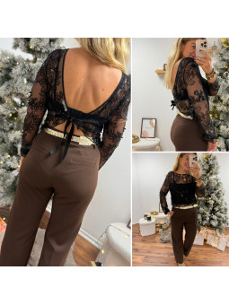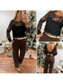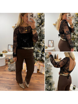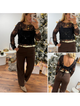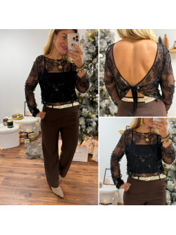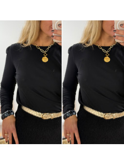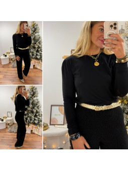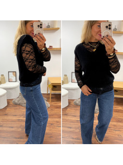 Tee shirt noir manches longues avec manches légèrement ballon...
