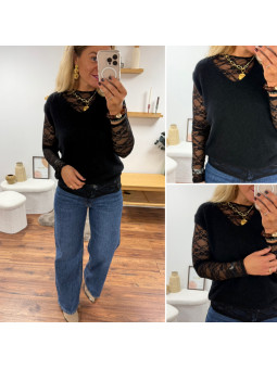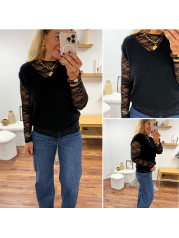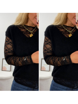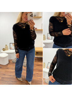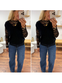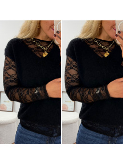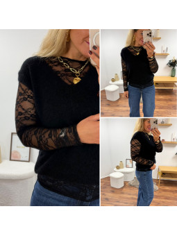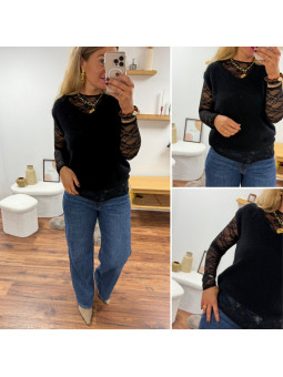 Pull col rond noir en maille toute douce. Cet article en TU...