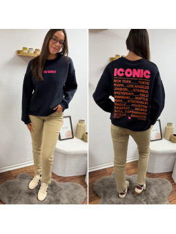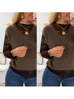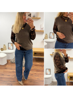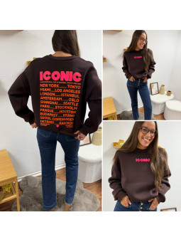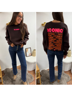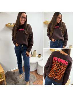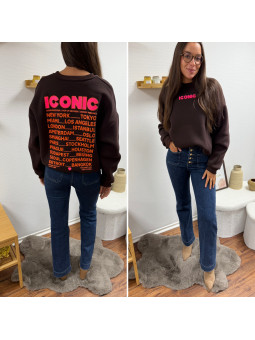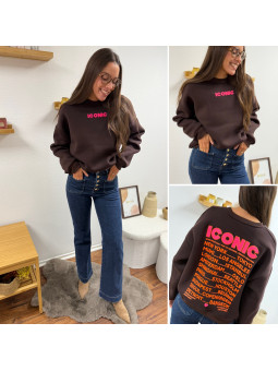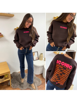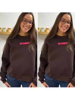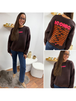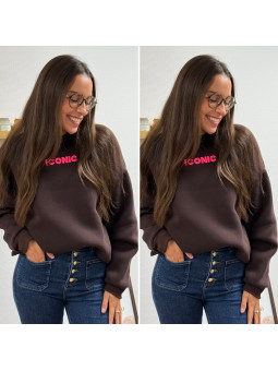 Sweat épais fourré tout doux couleur chocolat avec écritures...
