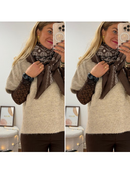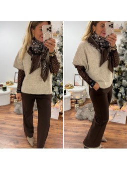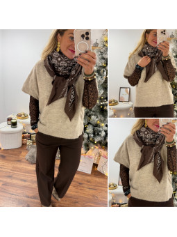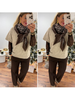 Étole bandana chocolat et écru 80% viscose et 20% laine...