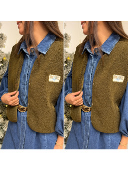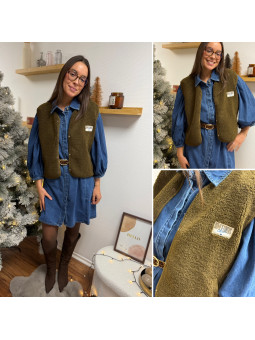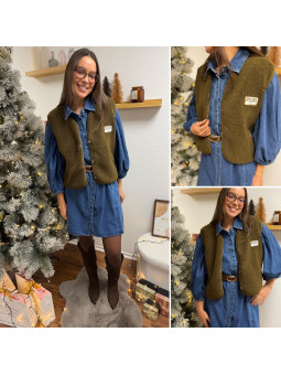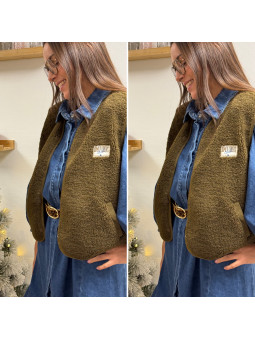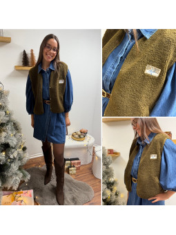 Gilet/veste sans manches à bouclettes avec logo "comfy lovers...
