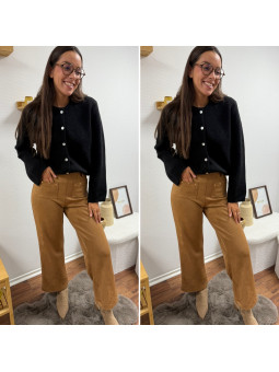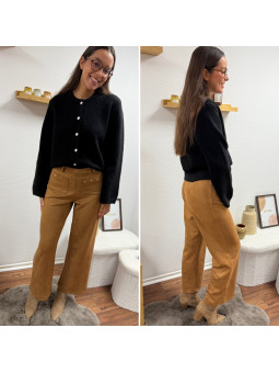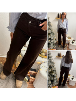 Jean wide leg chocolat avec boutons croisés Le S équivaut au...