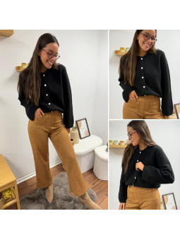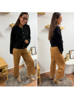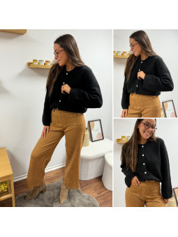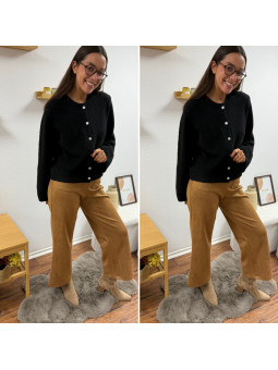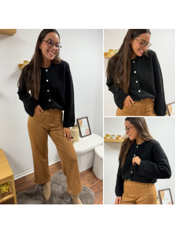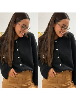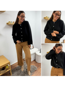 Gilet épais noir avec boutons nacrés et manches évasées Cet...