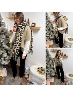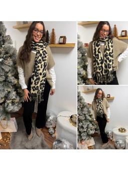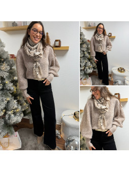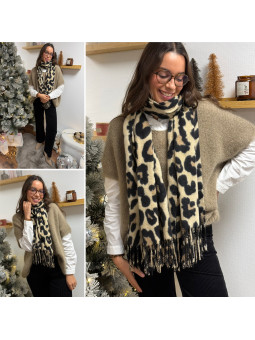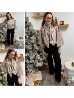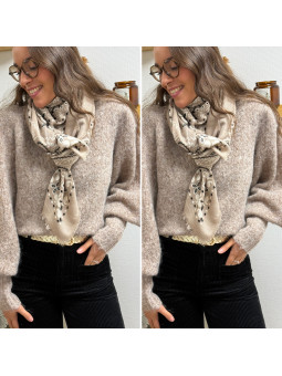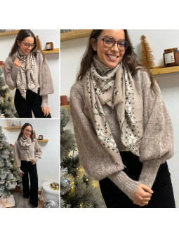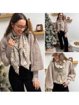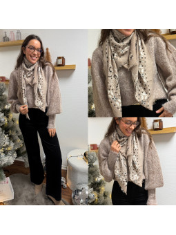 Étole bandana taupe avec motifs 80% viscose et 20% laine...
