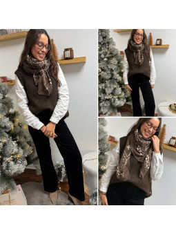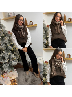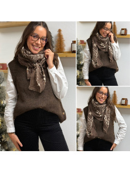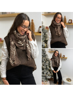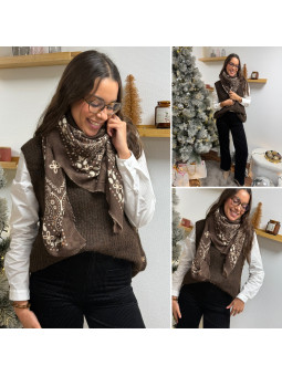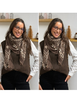 Étole façon bandana chocolat écrue et camel 80% viscose et 20%...