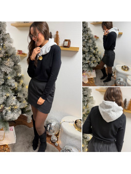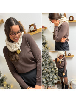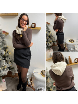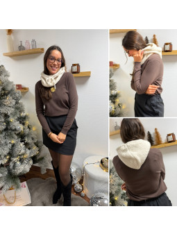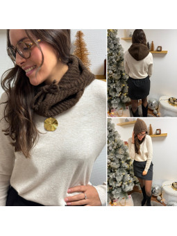 Cagoule en maille taupe avec noeud à nouer ( au milieu sur la...