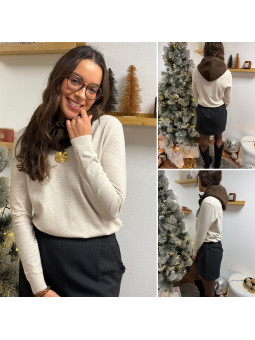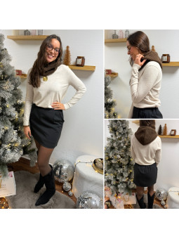 Cagoule en maille beige avec noeud à nouer 80% acrylique et...