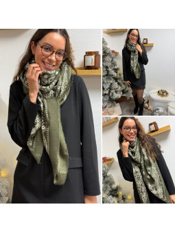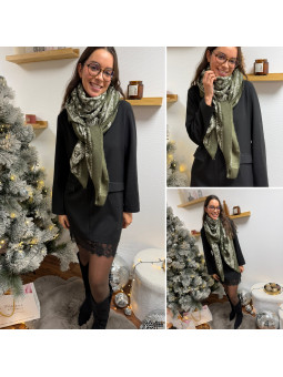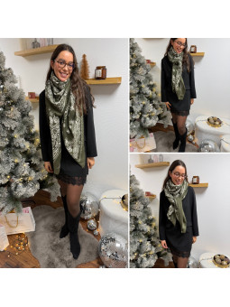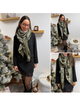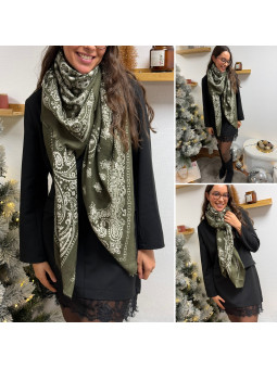Étole façon bandana kaki à motifs blancs 80% viscose et 20%...