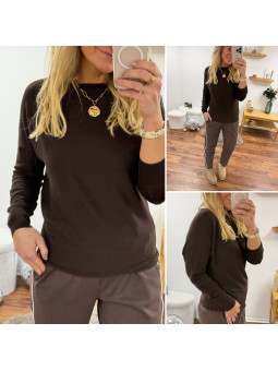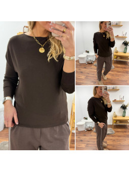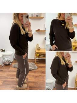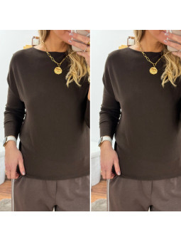 Pull fin à manches longues avec col bateau chocolat (du 36 au...