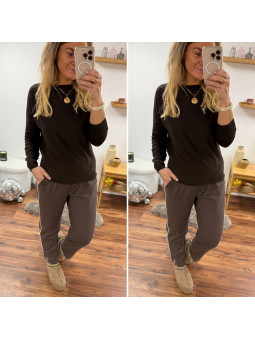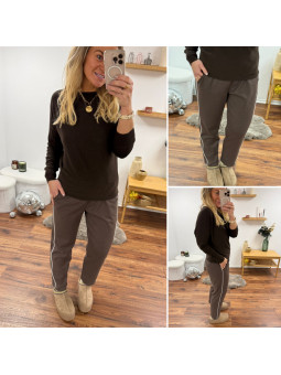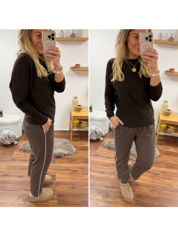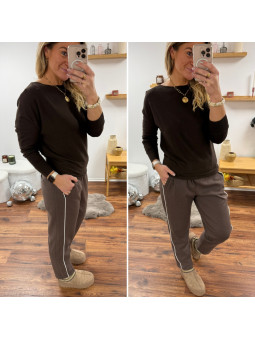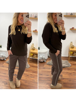 Pantalon chocolat avec bande blanche sur le côté et élastique...