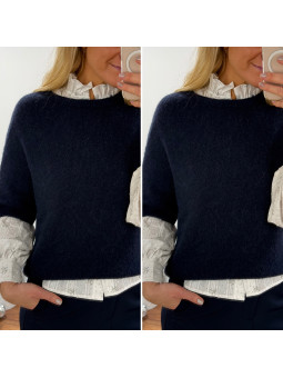 Pull manches courtes en alpaga bleu marine Cet article en TU...