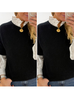 Pull manches courtes en alpaga noir Cet article en TU convient...