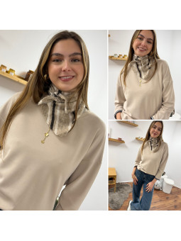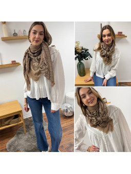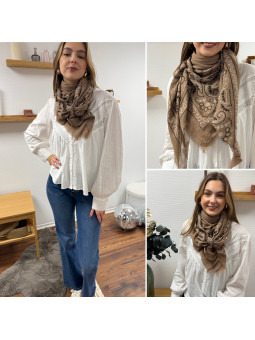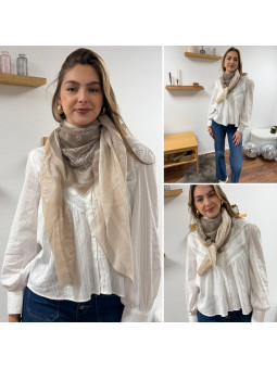 Fine écharpe en fine maille tricot taupe 80% acrylique et 20%...