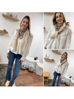 Fine écharpe en fine maille tricot écrue 80% acrylique et 20%...