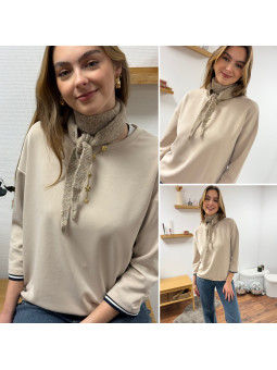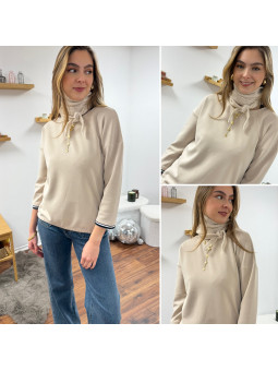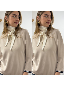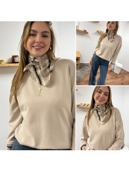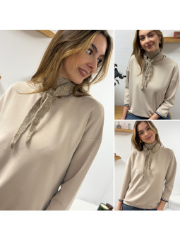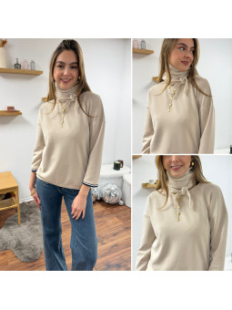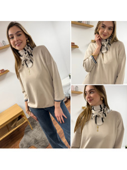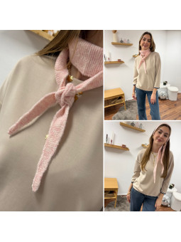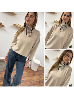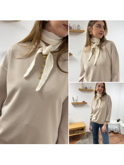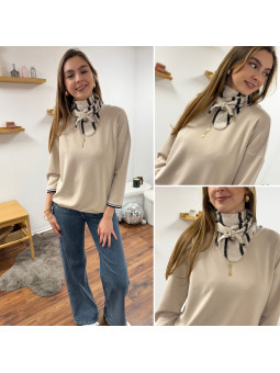 Fine écharpe en fine maille tricot beige clair 80% acrylique...