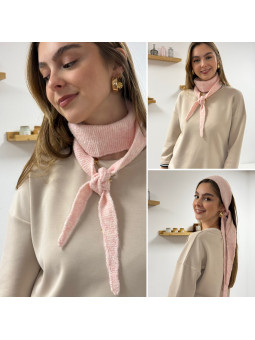 Fine écharpe en fine maille tricot rose pâle 80% acrylique et...