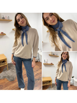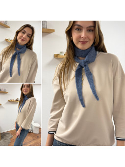 Fine écharpe en fine maille tricot bleu jean 80% acrylique et...