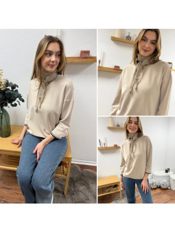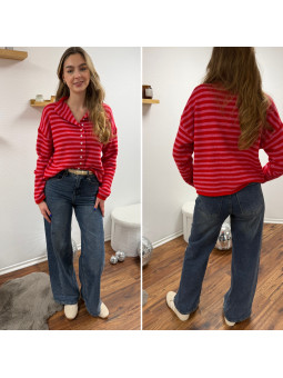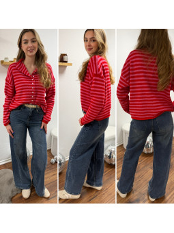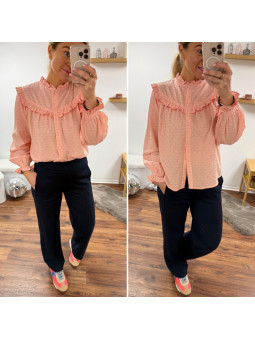 Chemise rayée chocolat et blanche avec volants sur le col Le...
