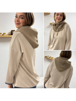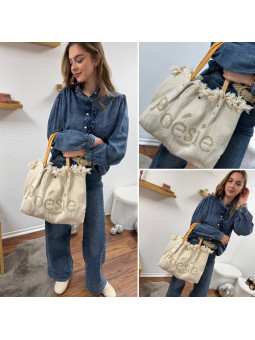 Veste à bouclettes col montant écrue avec des motifs fleuris...