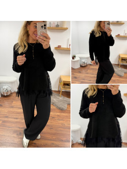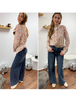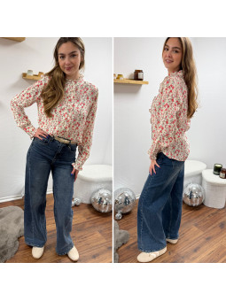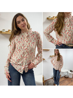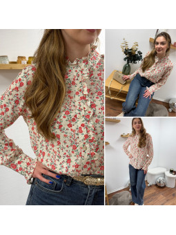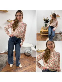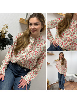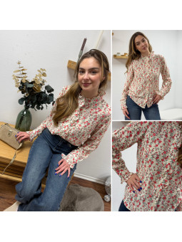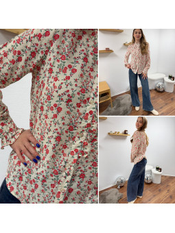 Chemise avec fleurs rouges et col volant Le SM équivaut au...