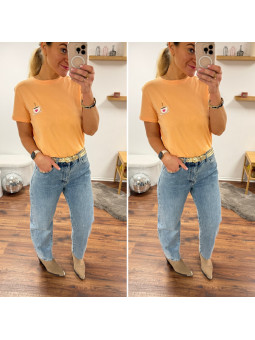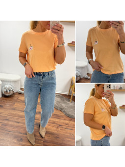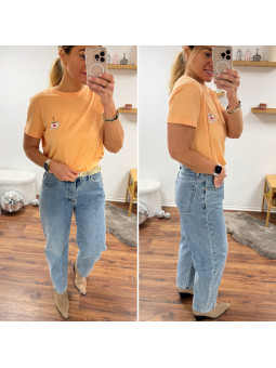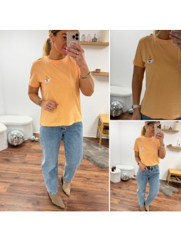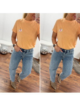 Tee shirt orange avec une tasse à café et un petit coeur Le SM...