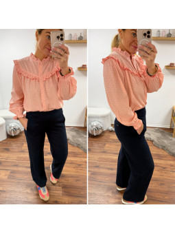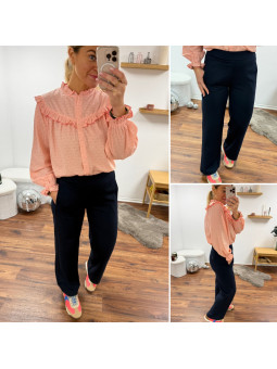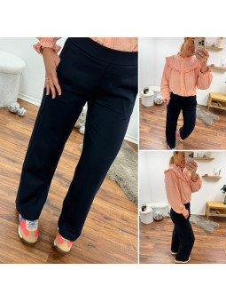 Pantalon fluide bleu marine souple avec élastique à la taille...