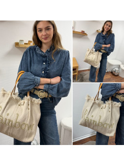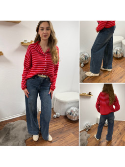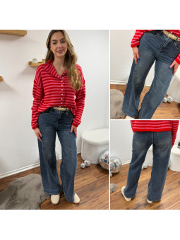 Jeans bleu clair légèrement délavé wide leg avec 2 boutons (du...