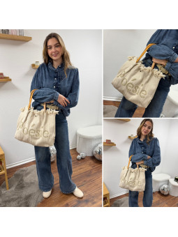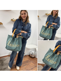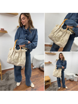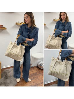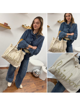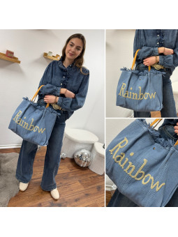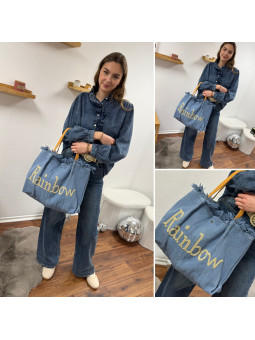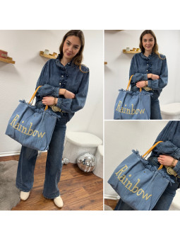 Jean wide leg palazzo bleu délavé avec couture qui tourne...
