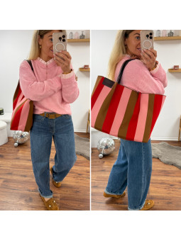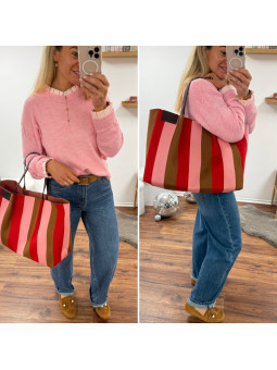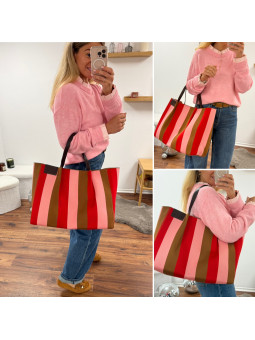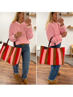 Sac cabas à rayures rose rouge et camel 100% polyester Sous...