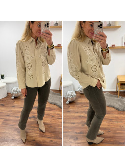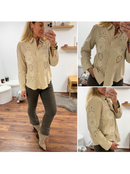 Tee shirt manches courtes beige avec décolleté en forme de...