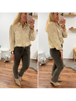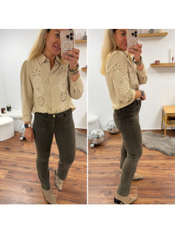 Jean chocolat flare avec poches plaquées sur le devant et...