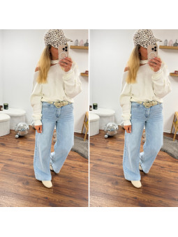 Jean wide leg palazzo avec couture qui tourne sur le devant...