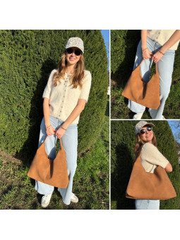 Mocassins camels avec perles et franges en suédine façon daim...