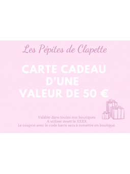 Carte cadeau à utiliser dans toutes les boutiques "Les Pépites...