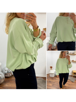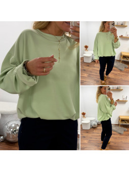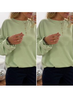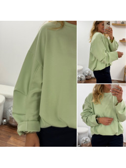 Sweat vert amande oversize avec manches et bas retroussés Cet...