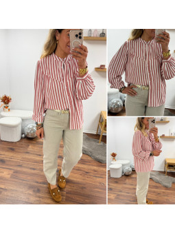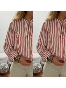 Chemise rayée bleu ciel avec poche et bande sur la boutonnière...