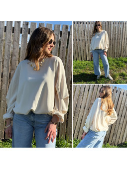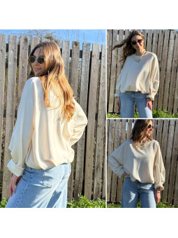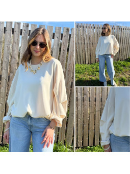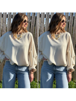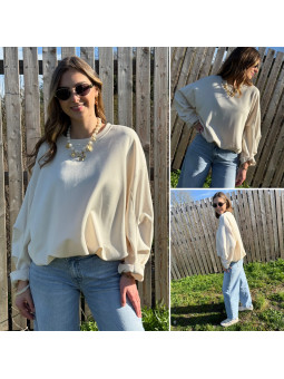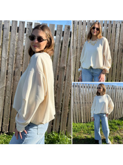 Sweat beige oversize avec manches et bas froncés Cet article...