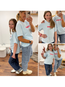 Tee-shirt kids bleu ciel "iconic" avec écritures roses et...