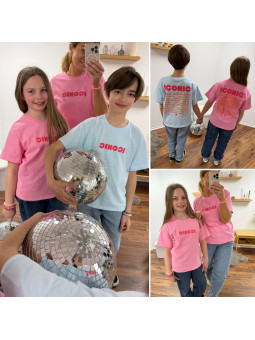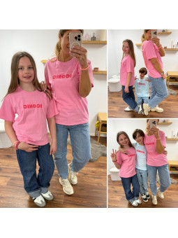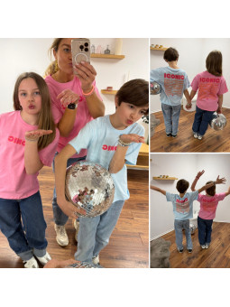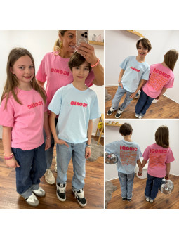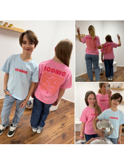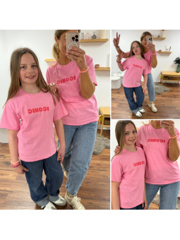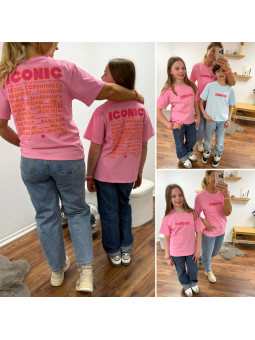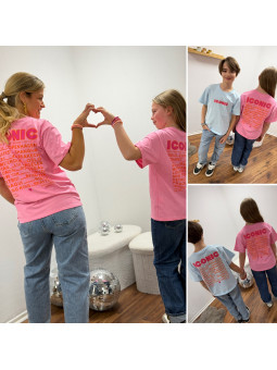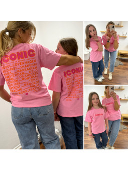Tee-shirt adulte rose "iconic" avec écritures roses et oranges...