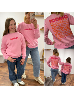 Sweat couleur rSweat adulte rose avec écritures iconic en rose...