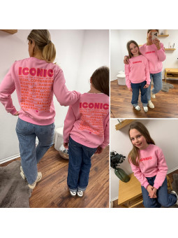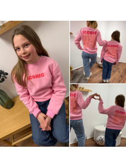Sweat kids rose avec écritures iconic en rose fluo et orange...