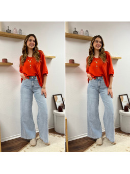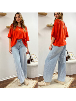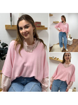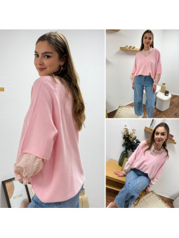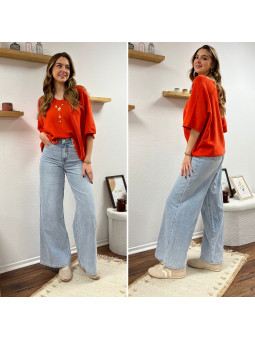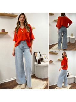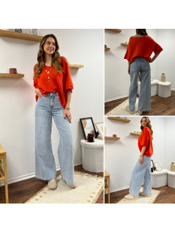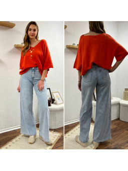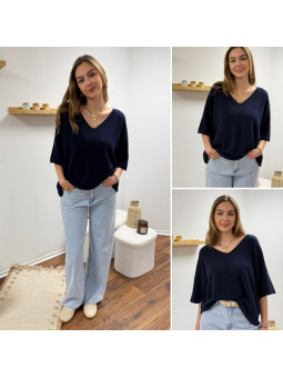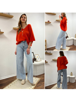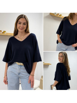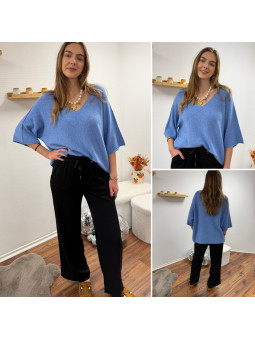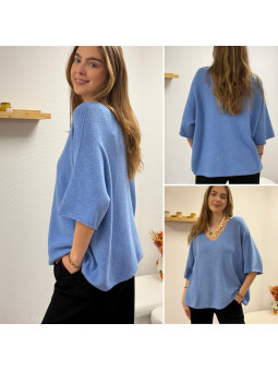 Pull col V oversize bleu jean manches coude Cet article en TU...