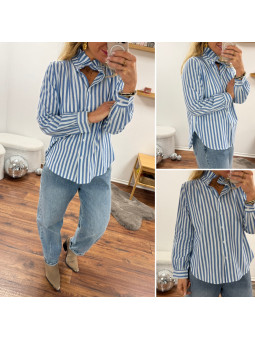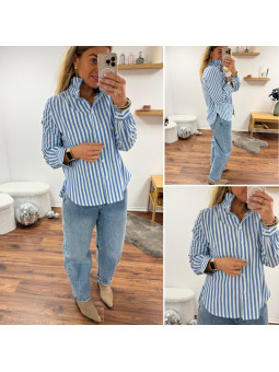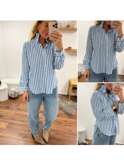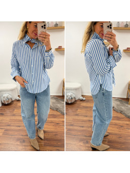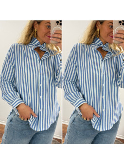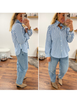 Chemise à rayures blanches et bleues avec col volant Le SM...