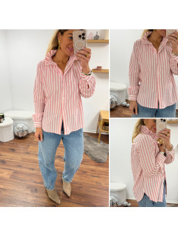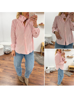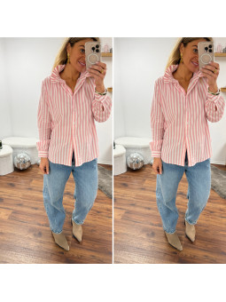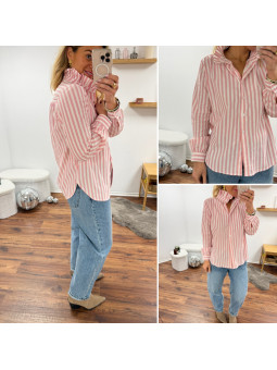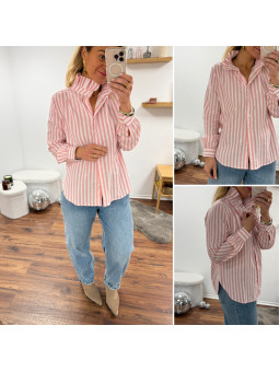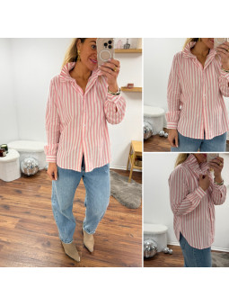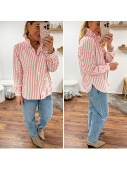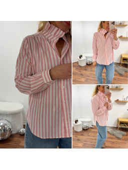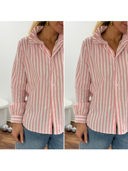 Chemise à rayures blanches et roses avec col volant Le SM...