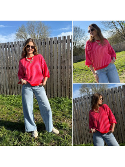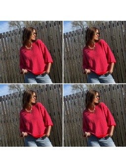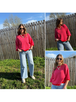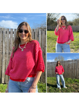 Pull manches courtes rayé rose et rouge Cet article en TU...