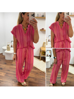 Chemise rose rayée blanche avec volants Le SM équivaut au...