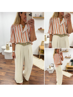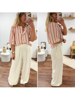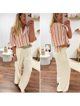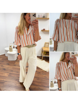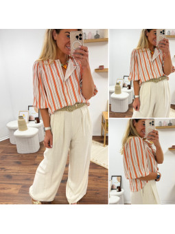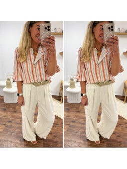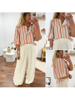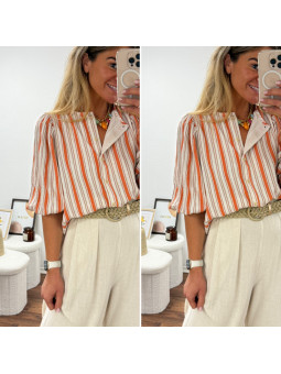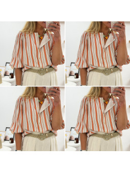 Blouse manches 3/4 écrue rayée orange Le SM équivaut au 36-38,...