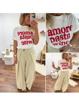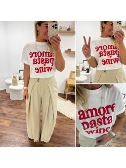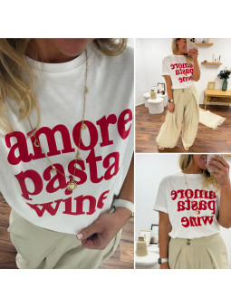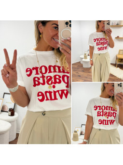 Tee-shirt blanc "amore pasta wine" en rouge Cet article en TU...
